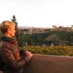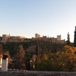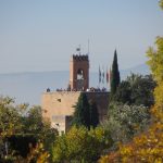 Granada nog even verkend na aankomst en tevens hebben we maar de tickets voor het Alhambra opgehaald. Die hadden we weliswaar al in Nederland besteld, maar moesten nog op een speciaal punt worden verzilverd. Of beter gezegd, afgedrukt. Waarom dat dan niet thuis kan is ons nog steeds een raadsel. ’s Avonds spoedden we ons naar boven in de moslimwijk vanwaar je vanaf een specifiek terras een prachtig uitzicht op het Alhambra hebt. Zo je op één van de foto’s ziet denken meer mensen daar zo over en zit men urenlang met de camera in de aanslag om die éne mooie foto te maken. Dit is dat uitkijkpunt gezien vanaf het Alhambra: